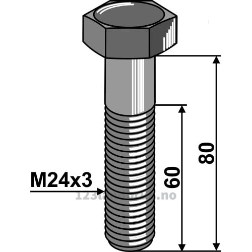 - Sekskantbolt: M24 x 3 x 80 – 10.9 – Stål