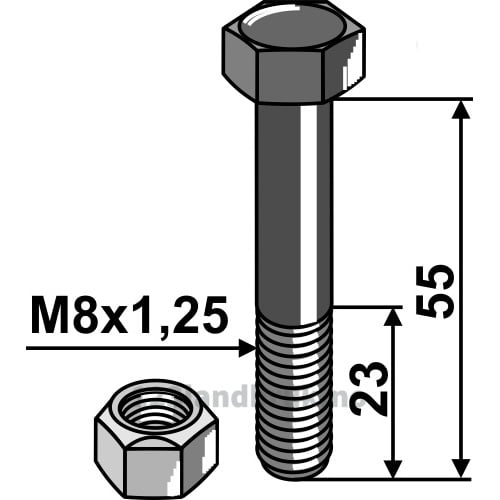 Sekskantskrue med Låsemutter, 8.8, M8x1,25×55 mm til Agrimaster