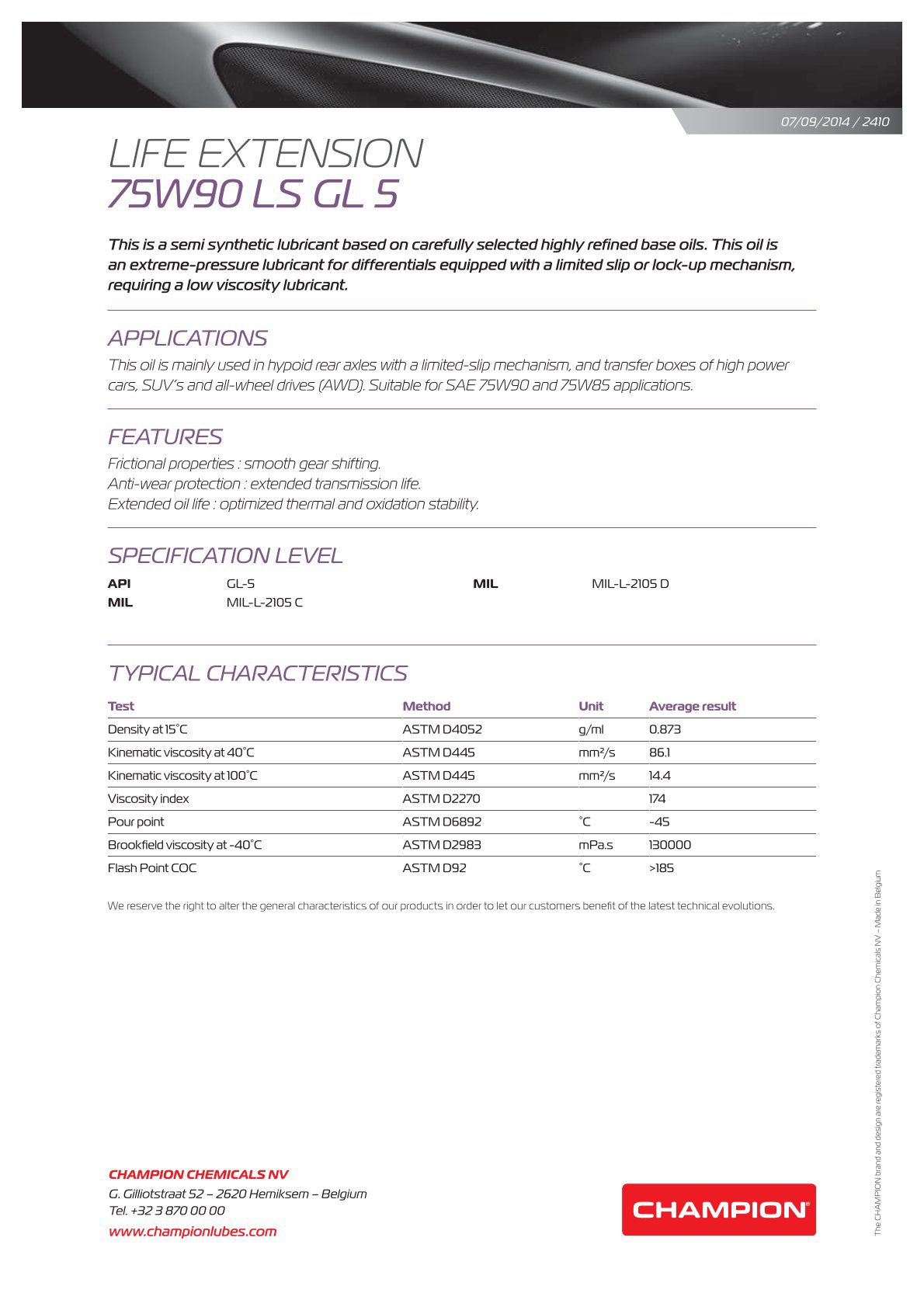 CHAMPION LIFE EXTENSION 75W90 LS GL 5