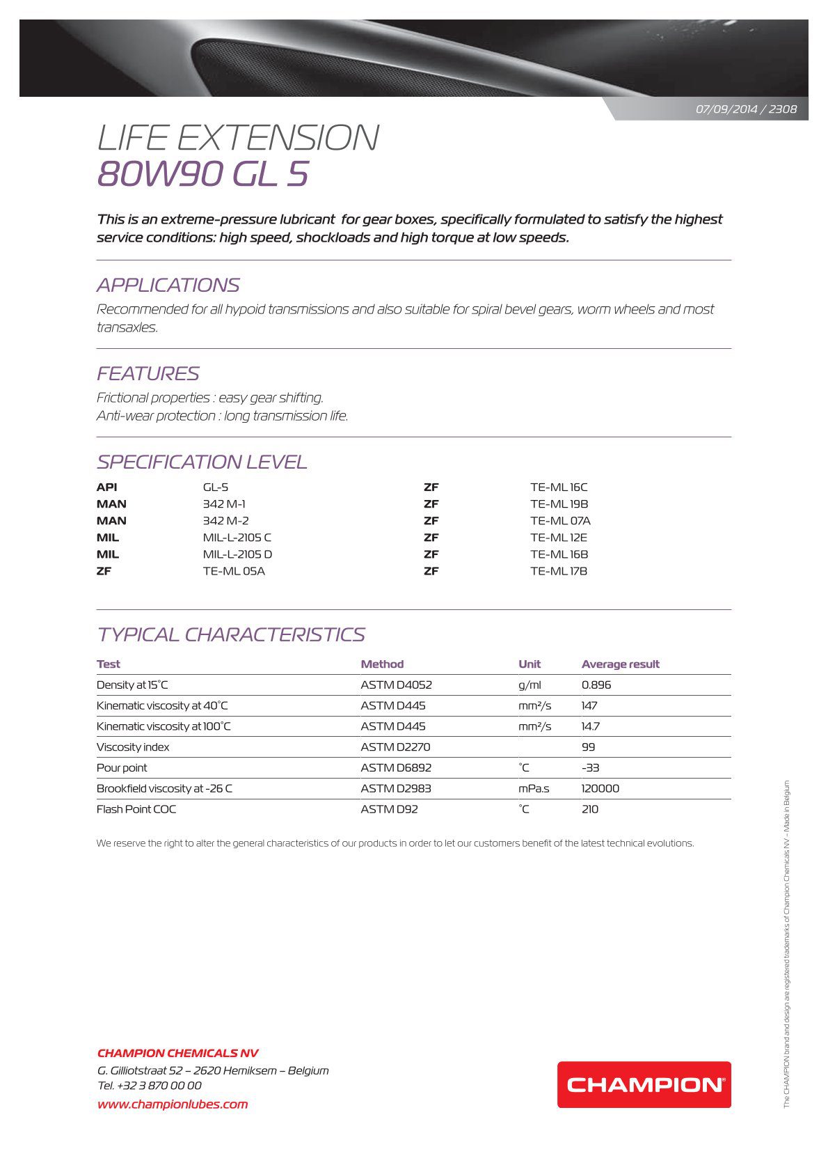 CHAMPION LIFE EXTENSION 80W90 GL5