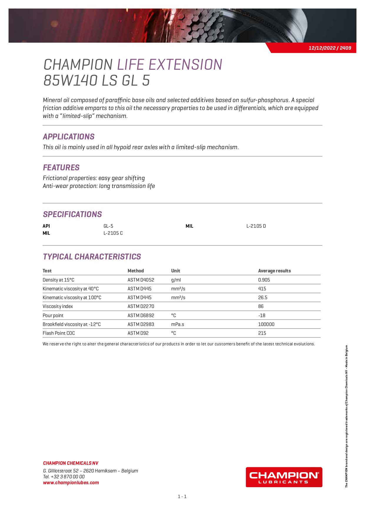 Mineral basert girolje med et bredt bruke i girkasser og hypoid tannhjul der API GL-5 anbefales. Ikke aggressiv mot gule metaller. Life Extension 80W140 og 85W140 har naturlig høyt viskositetsindeks, lavt stivnepunkt, god oksidering og lang levetid. Kan brukes i et bredt temperaturområde.