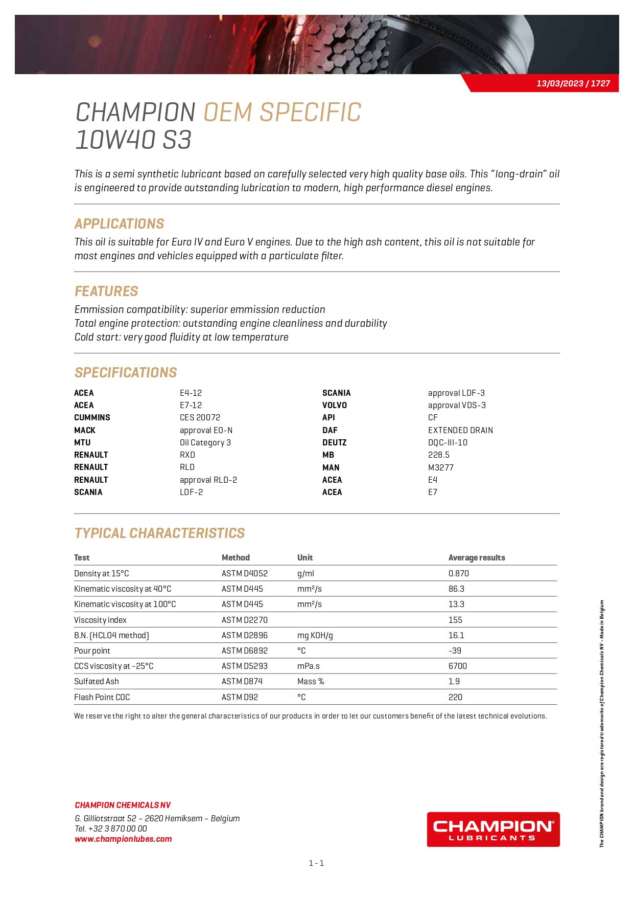 CHAMPION OEM SPECIFIC IFIC 10W40 S3