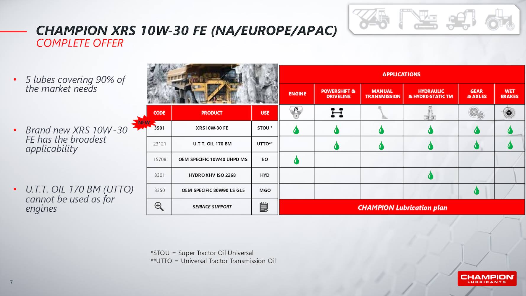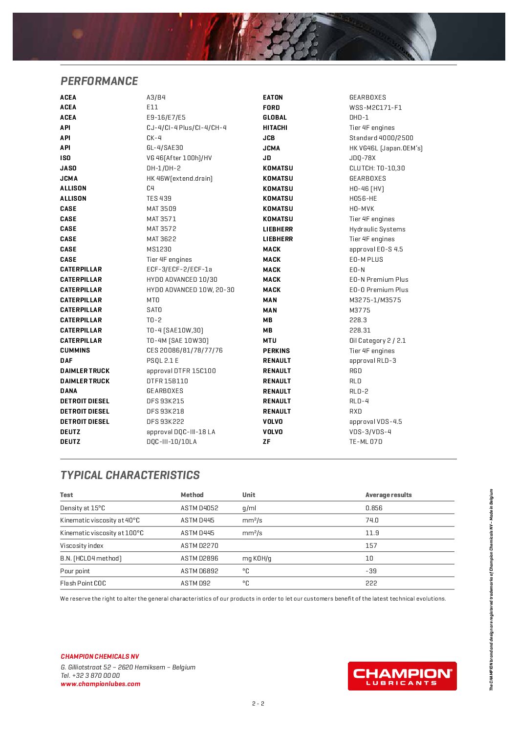 - Kan brukes i motorer, powershift- og manuelle gir, kraftuttak og hydraulikksystemer.
