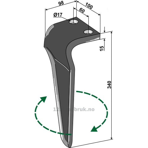Fresetind til Horisontalfres, 340x100x15 mm, Høyre til Maschio / Gaspardo
