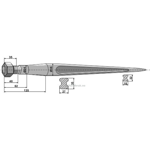 Frontlastertind, 900xØ36 mm til Baas-Trima
