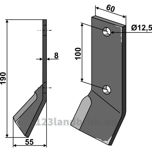 Gravestål , 190x60x8 mm, Høyre til Hemos