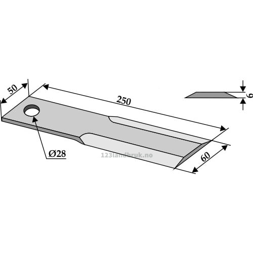 Halmsnitterkniv, 250x50x6 mm til Dücker