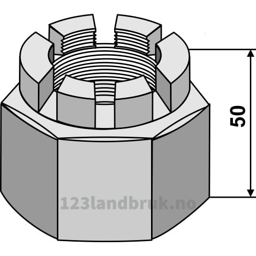 Kronemutter for 50×50 firkantaksel – 8.8 – M48x2mm