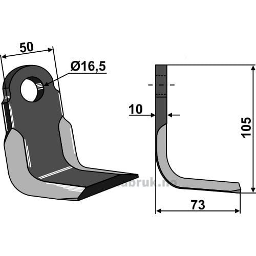 L-kniv / Slagstål – 105x50x10mm – Palladino