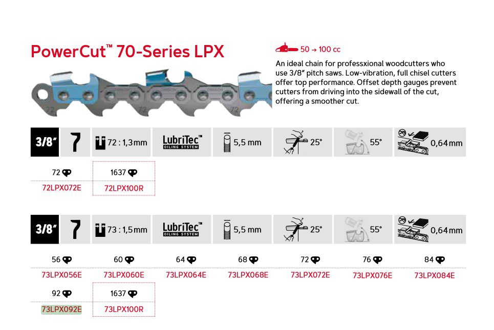 Oregon PowerCut™ – 73LPX, 3/8″, 1,5 mm, 92 drivledd