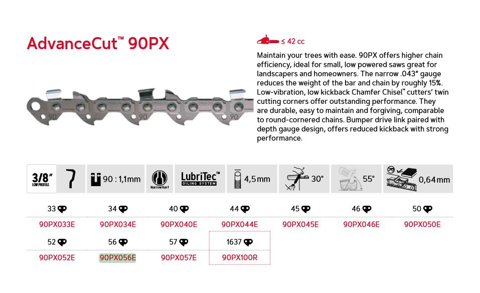 Oregon AdvanceCut™ – 90PX – 3/8″ Low Profile™ – 1,1 mm – 56DL – 16″ – 90PX056E