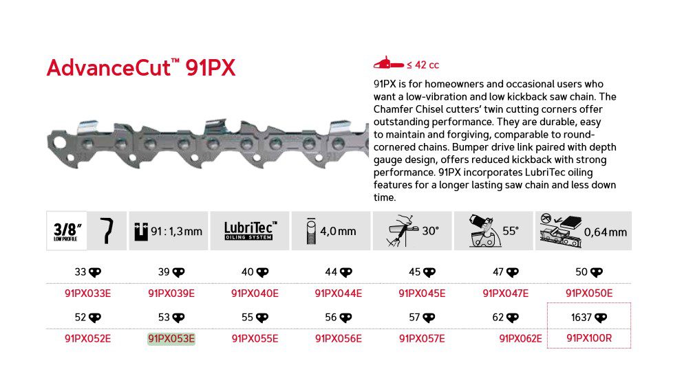 Oregon AdvanceCut™ – 91PX – 3/8″ Low Profile™ – 1,3 mm – 53DL – 14″ – 91PX053E
