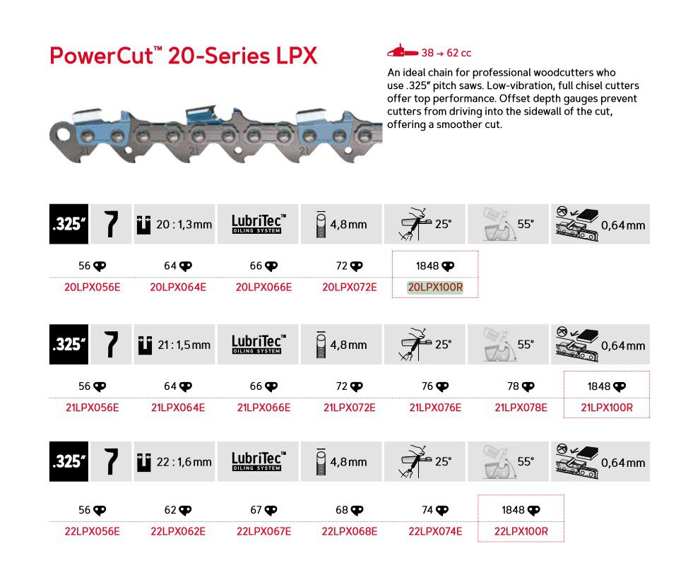 Oregon PowerCut™ – 20LPX – .325″ – 1,3 mm – 1848DL – 20LPX100R