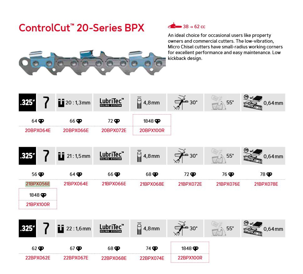 Oregon ControlCut™ – 21BPX – .325″ – 1,5 mm – 56DL – 13″ – 21BPX056E