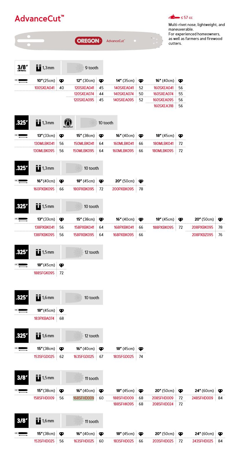 Oregon AdvanceCut™ motorsagsverd er ideelt for trefellere som bruker små til mellomstore motorsager. Dette sverdet er utviklet for å levere høy ytelse, slitestyrke og kontroll under krevende forhold.