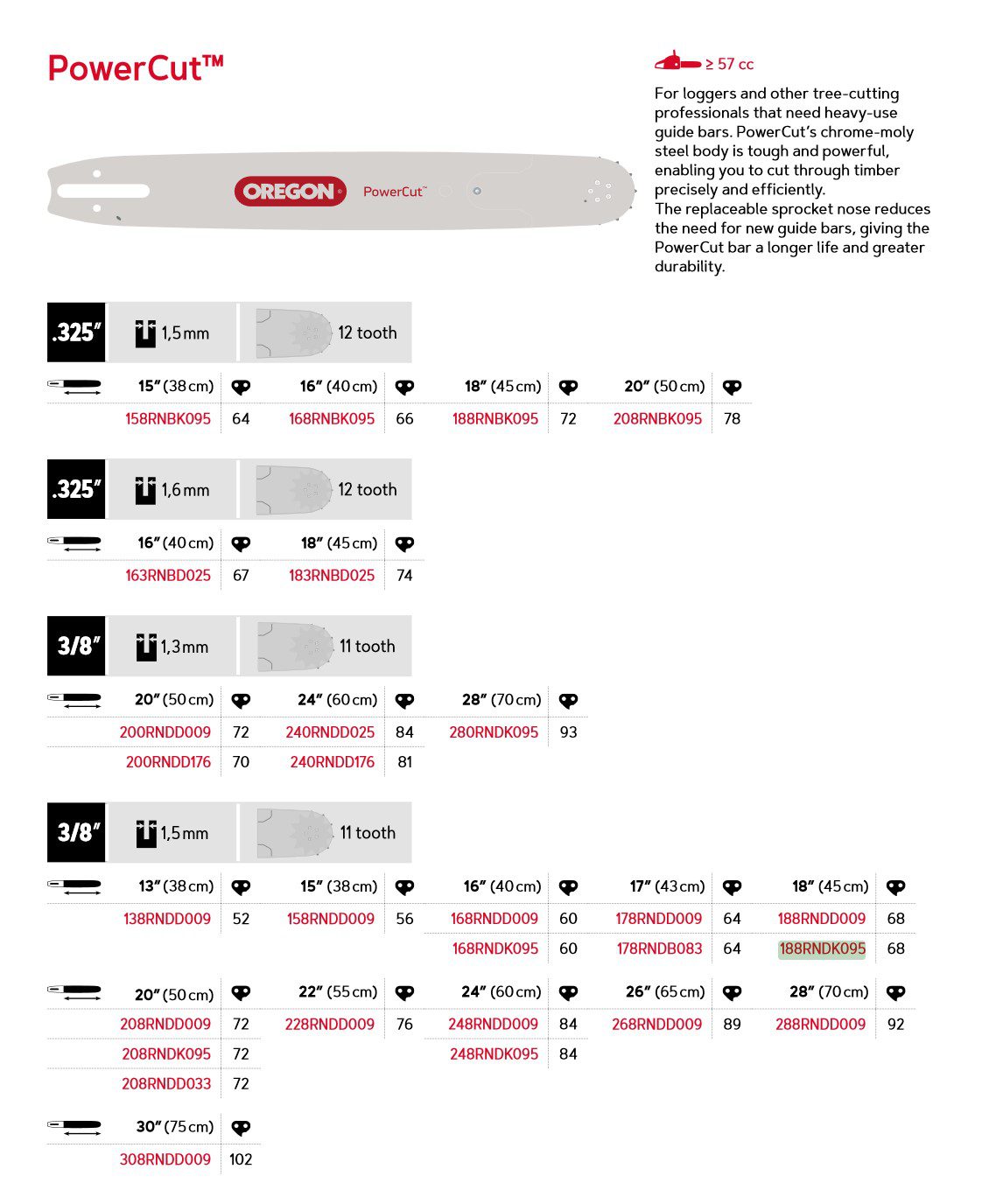 Oregon PowerCut™ motorsagsverd er utviklet med en solid konstruksjon for profesjonelle brukere som benytter kraftige motorsager. Sverdet har en utskiftbar sverdspiss, som eliminerer behovet for å kjøpe et helt nytt sverd, og bidrar til økt kostnadseffektivitet.