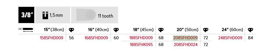 - Kjededeling: 3/8″