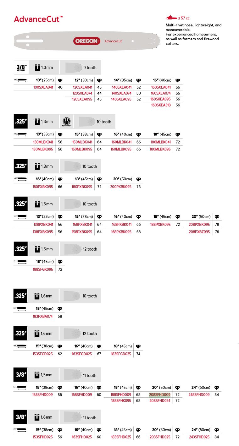 Oregon AdvanceCut™ motorsagsverd er ideelt for trefellere som bruker små til mellomstore motorsager. Dette sverdet er utviklet for å levere høy ytelse, slitestyrke og kontroll under krevende forhold.