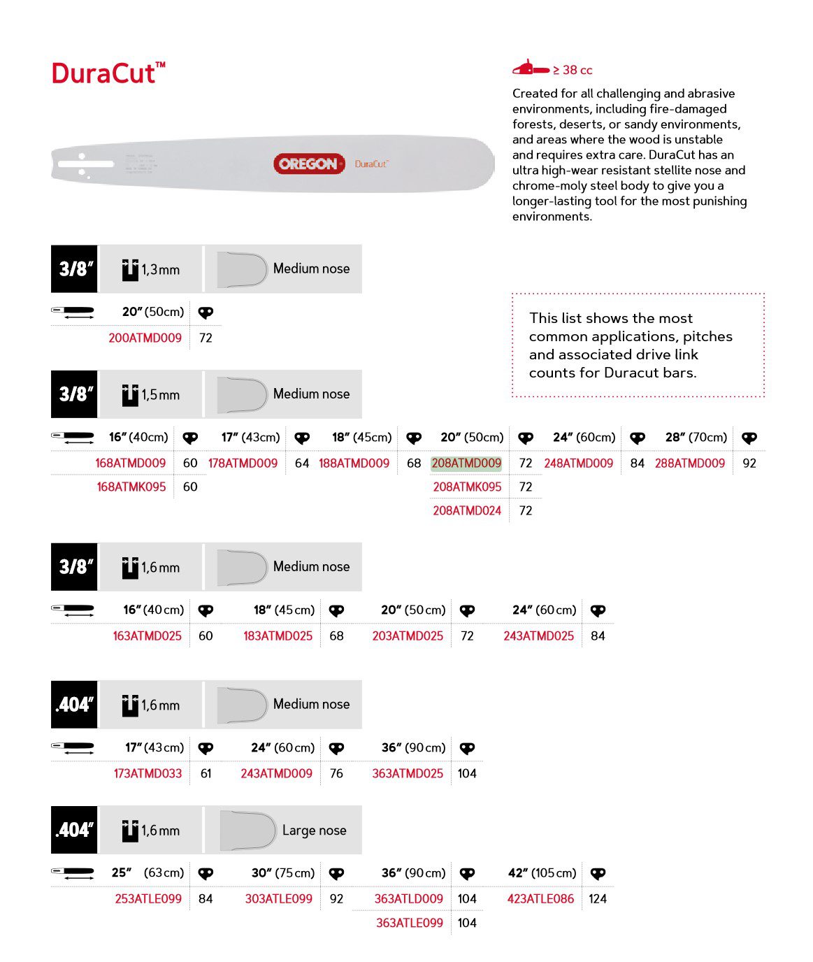 Oregon DuraCut™ – ATM – 3/8″ – 72DL – 1,5 mm – 20″ – 208ATMD009