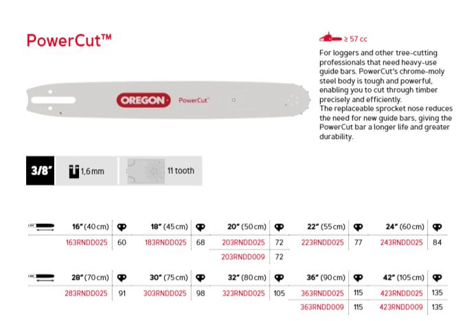 Oregon PowerCut™ motorsagsverd er utviklet med en solid konstruksjon for profesjonelle brukere som benytter kraftige motorsager. Sverdet har en utskiftbar sverdspiss, som eliminerer behovet for å kjøpe et helt nytt sverd, og bidrar til økt kostnadseffektivitet.