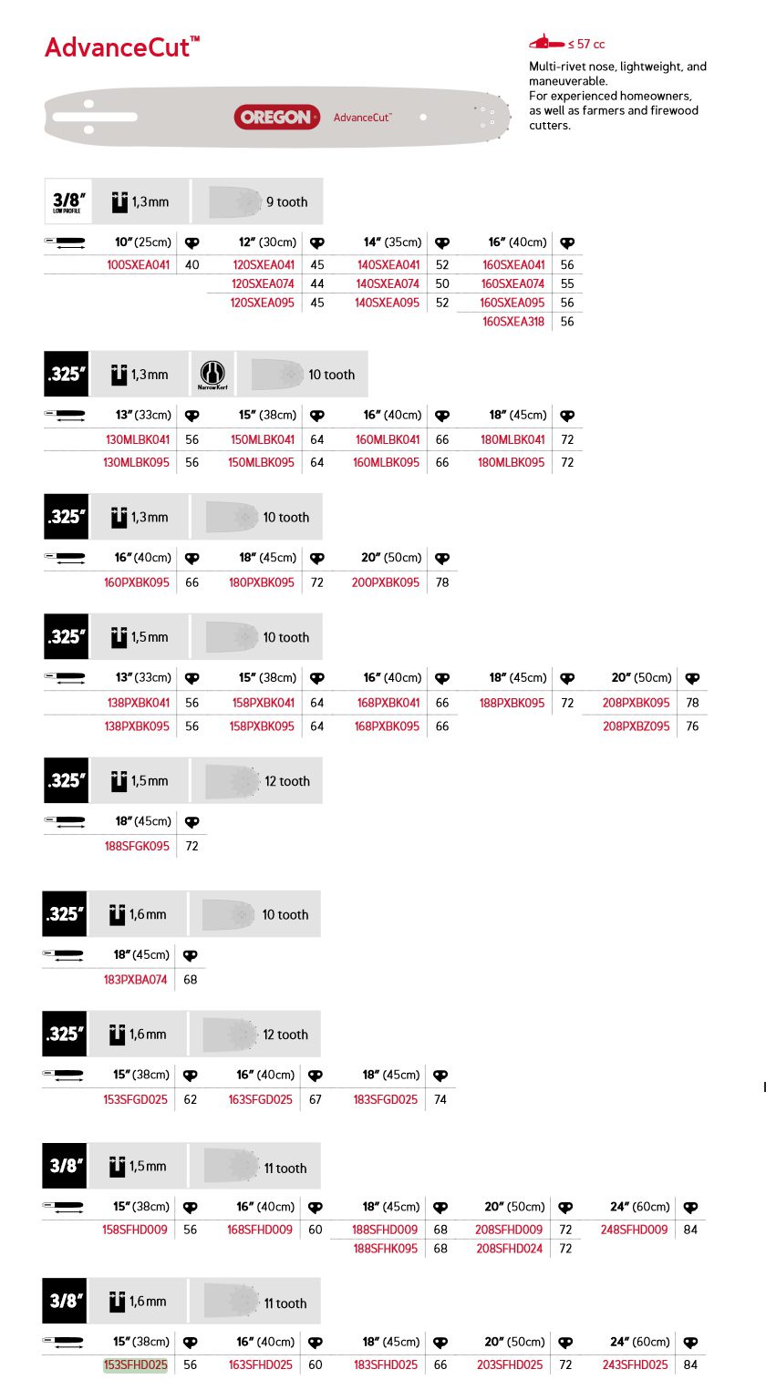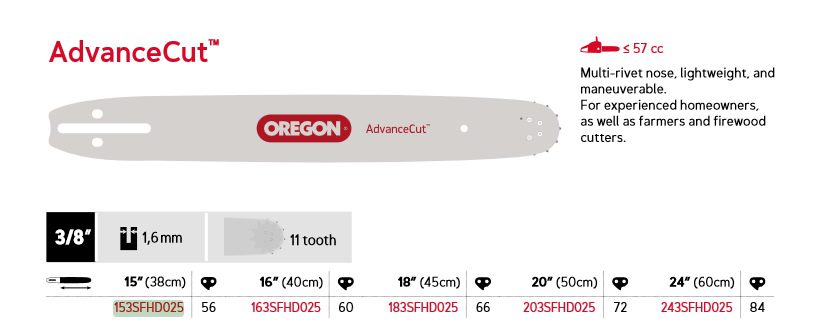 Oregon AdvanceCut™ – 3/8″, 1,6 mm, 56 drivledd 15″ D025