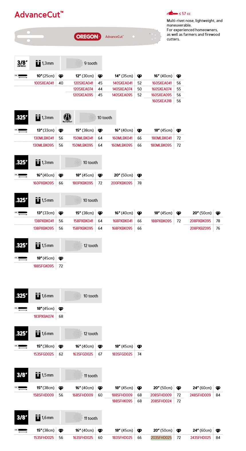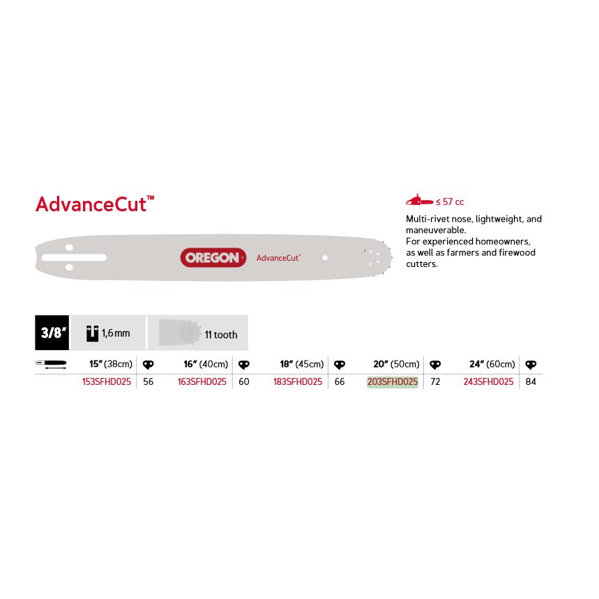 Oregon AdvanceCut™ motorsagsverd er ideelt for trefellere som bruker små til mellomstore motorsager. Dette sverdet er utviklet for å levere høy ytelse, slitestyrke og kontroll under krevende forhold.