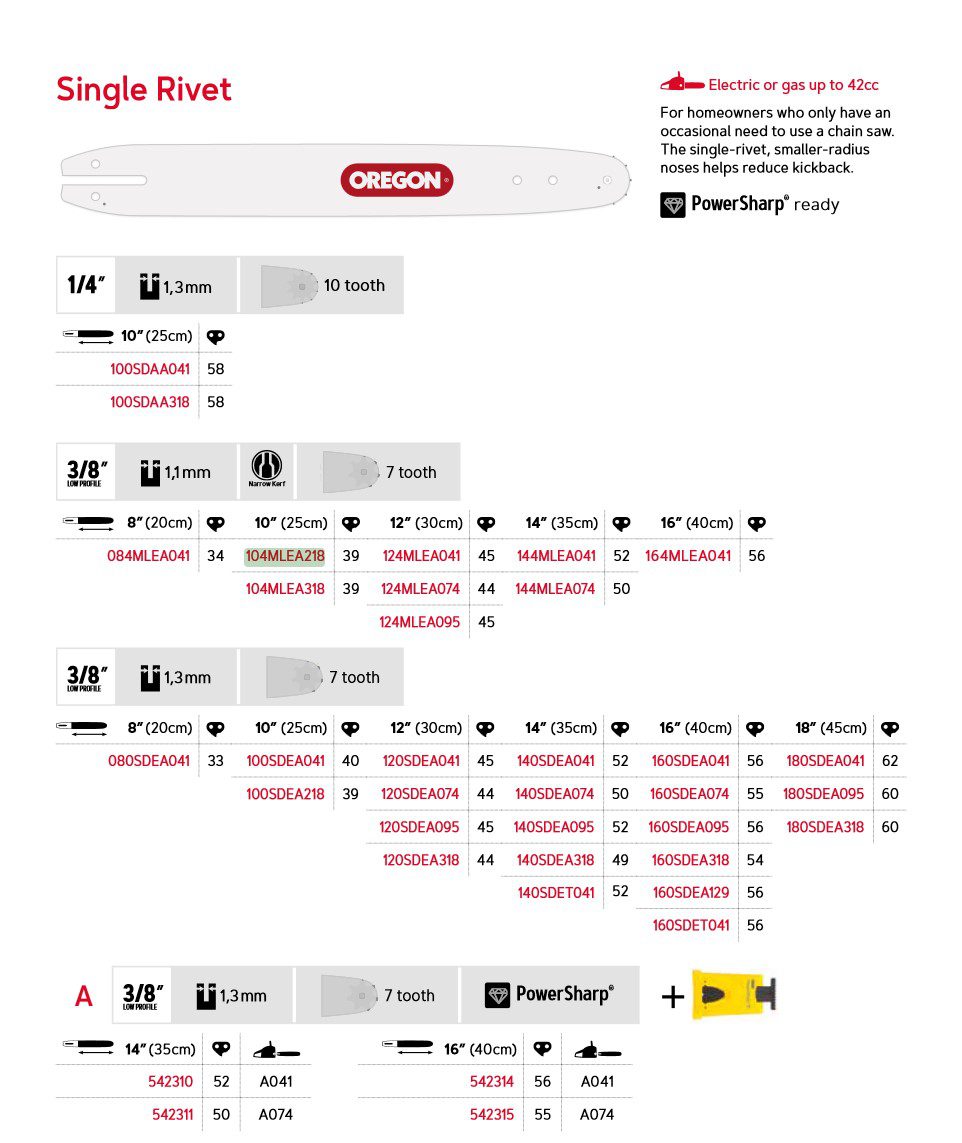 Oregon Single Rivet er et lett og lettmanøvrerbart sverd, ideelt for hobbybruk og sporadisk bruk med små elektriske og bensindrevne motorsager.