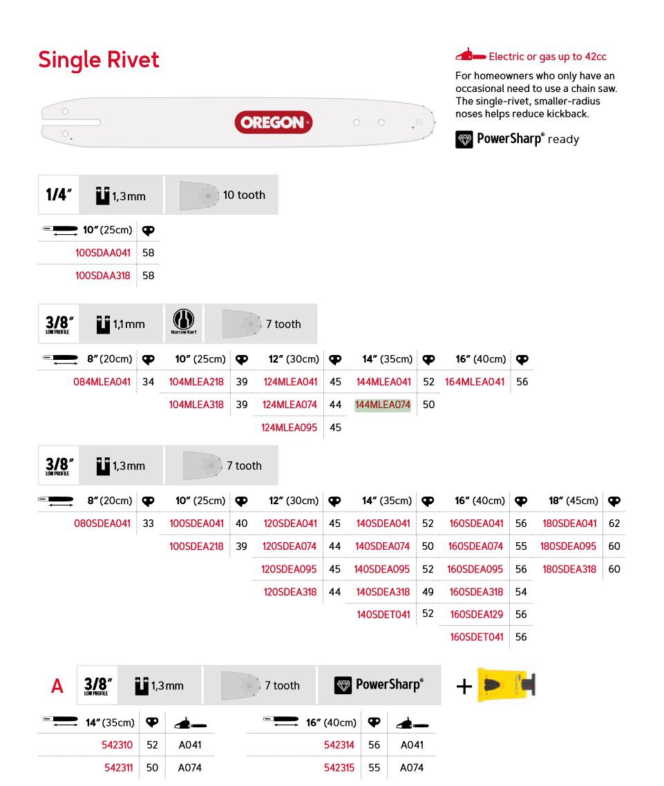 Oregon Single Rivet er et lett og lettmanøvrerbart sverd, ideelt for hobbybruk og sporadisk bruk med små elektriske og bensindrevne motorsager.