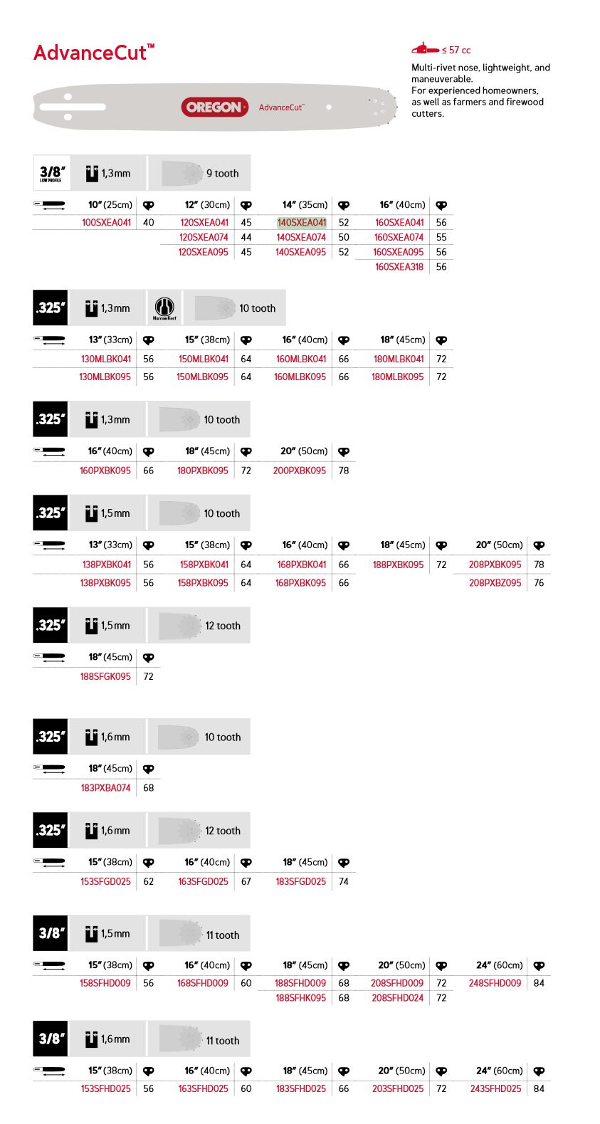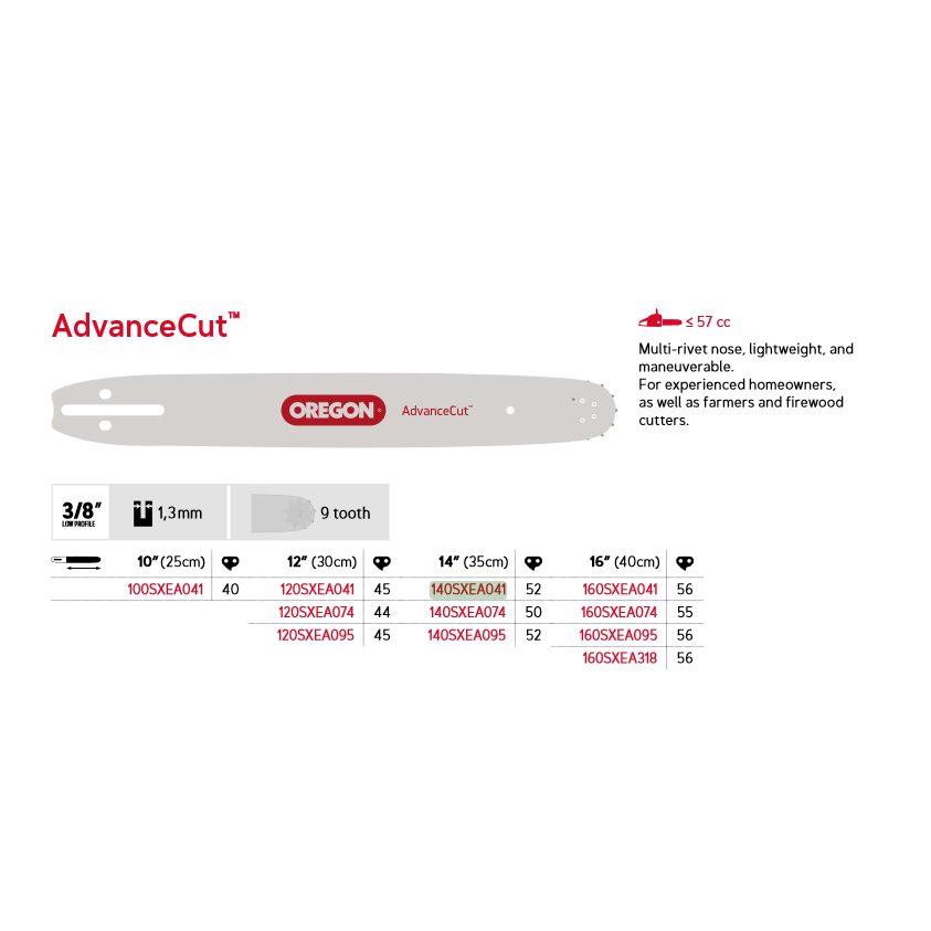 Oregon AdvanceCut™ motorsagsverd er et lett, slitesterkt og lettmanøvrerbart sverd som er ideelt for lett kommersiell bruk og hobbybrukere som bruker små til mellomstore motorsager. Dette sverdet gir god kontroll og presisjon under arbeid.
