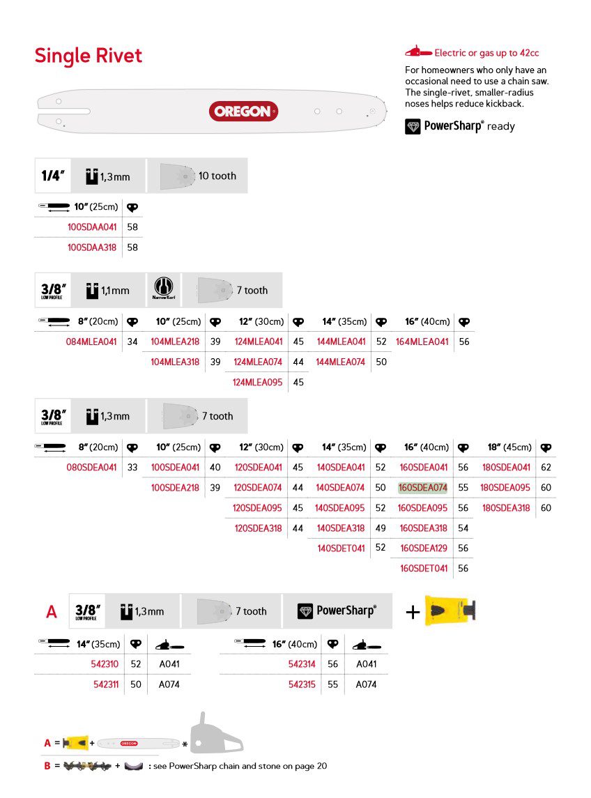 Oregon Single Rivet er et lett og lettmanøvrerbart sverd, ideelt for hobby og sporadisk bruk med små elektriske og bensindrevne motorsager.