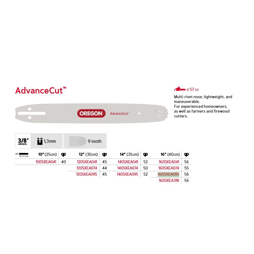 Oregon AdvanceCut™ – 3/8″ Low Profile™, 1,3 mm, 56 drivledd 16″ A095