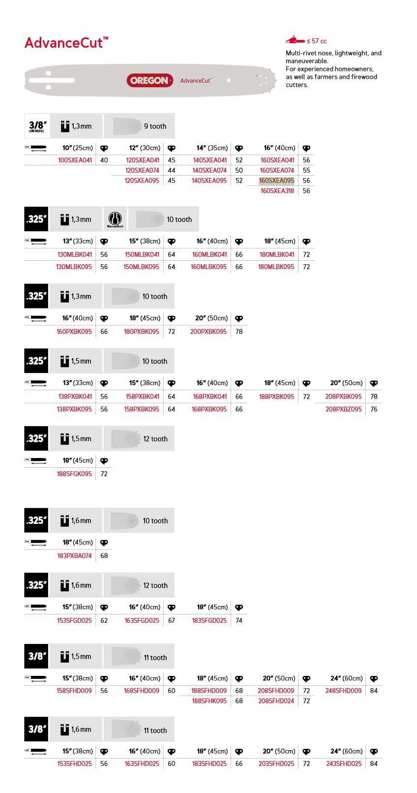 Oregon AdvanceCut™ motorsagsverd er et lett, slitesterkt og lettmanøvrerbart sverd som er ideelt for lett kommersiell bruk og hobbybrukere som bruker små til mellomstore motorsager. Dette sverdet gir god kontroll og presisjon under arbeid.