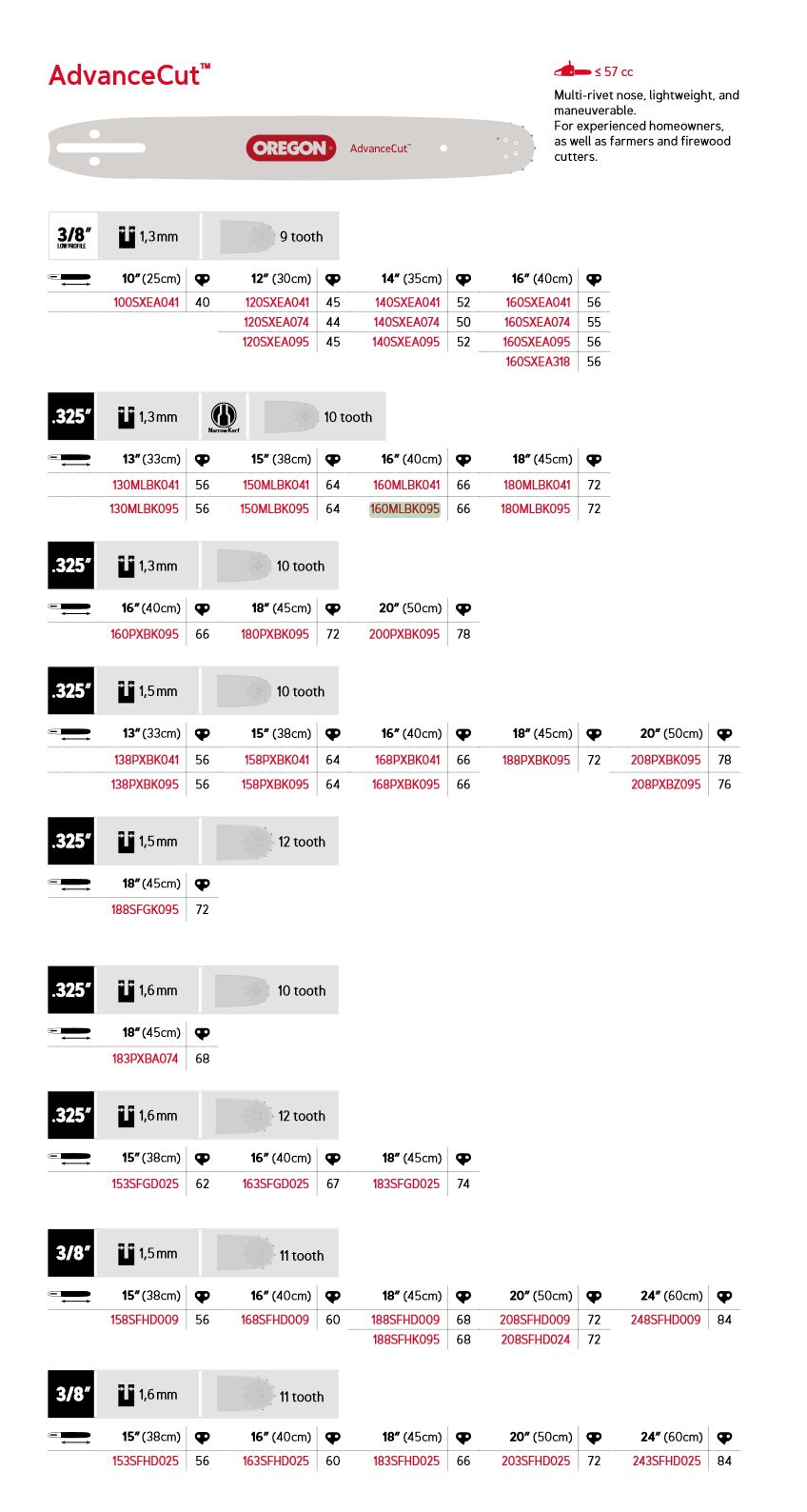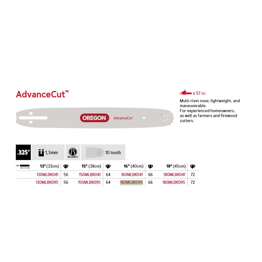 Oregon AdvanceCut™ – .325″, 1,3 mm, 66 drivledd 16″ K095