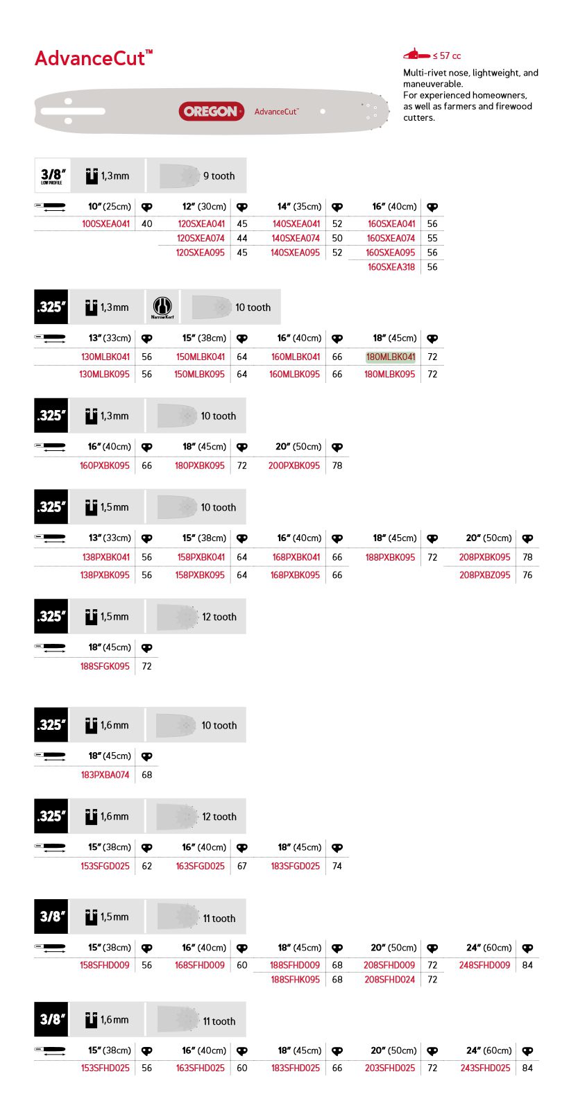Oregon AdvanceCut™ – .325″, 1,3 mm, 72 drivledd 18″ K041