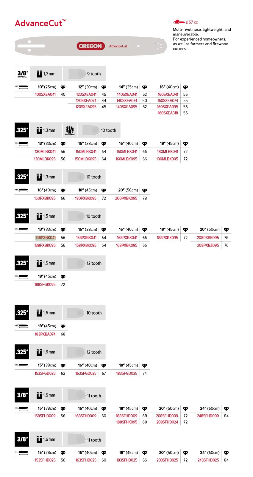 Oregon AdvanceCut™ – .325″, 1,5 mm, 56 drivledd 13″ K041