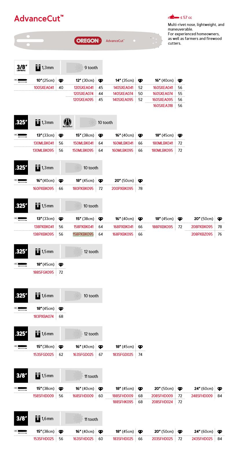 Oregon AdvanceCut™ – PXB – .325″ – 64DL – 1,5 mm – 15″ – 158PXBK095