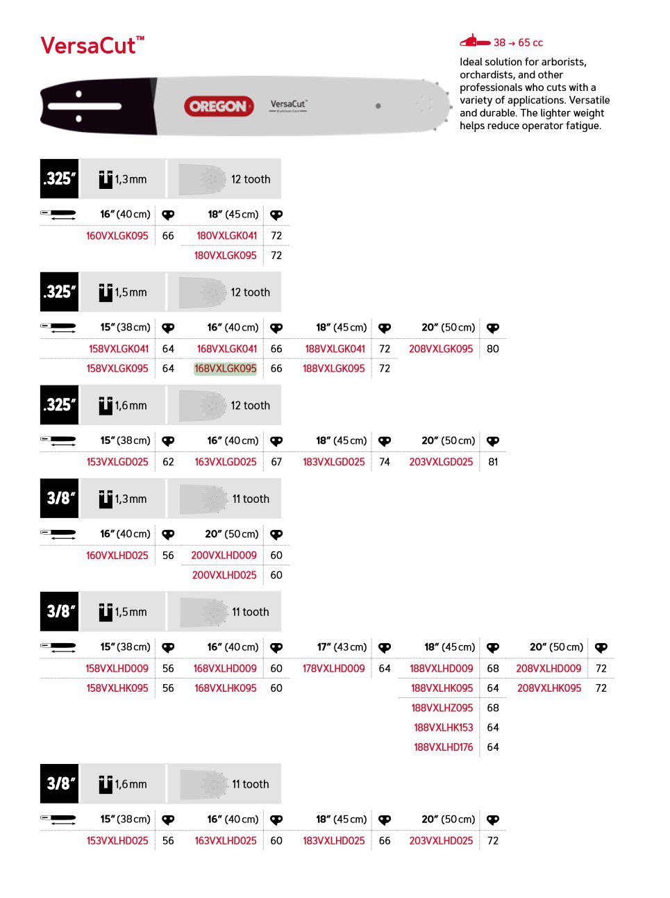 Oregon VersaCut™ – .325″, 1,5 mm, 66 drivledd 16″ K095