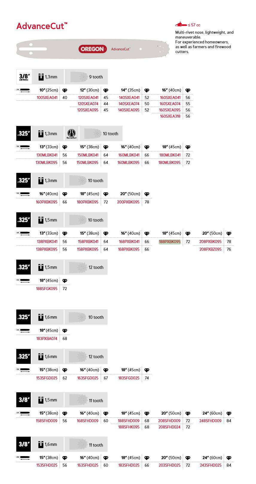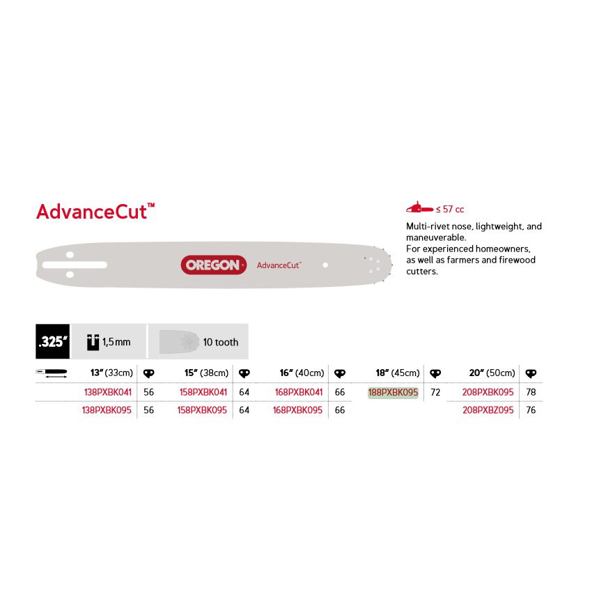 Oregon AdvanceCut™ – .325″, 1,5 mm, 72 drivledd 18″ K095