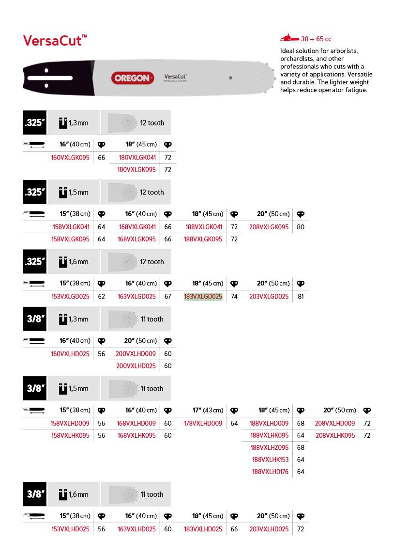 Oregon VersaCut™ – VXLG – .325″ – 74DL – 1,6 mm – 18″ – 183VXLGD025