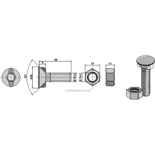 Plogbolt med Mutter – 10.9 – M16x2x40mm