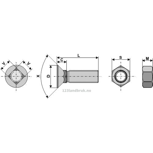 Plogbolt med Mutter – 8.8 – 7/16″ UNCx32mm