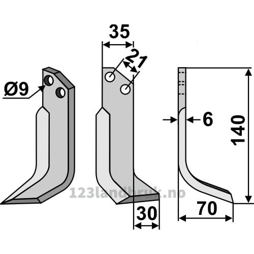 Rotorfreskniv, 140x35x6 mm, Høyre til Grillo (Pinza)