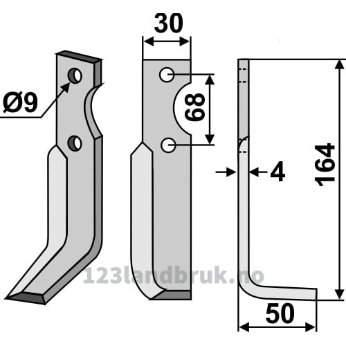 Rotorfreskniv – 164x30x4mm – Høyre – Benassi