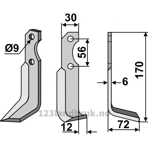 Rotorfreskniv – 170x30x6mm – Høyre – Bertolini
