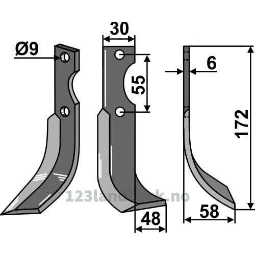Rotorfreskniv – 172x30x6mm – Høyre – Grillo (Pinza), Oosterlaan