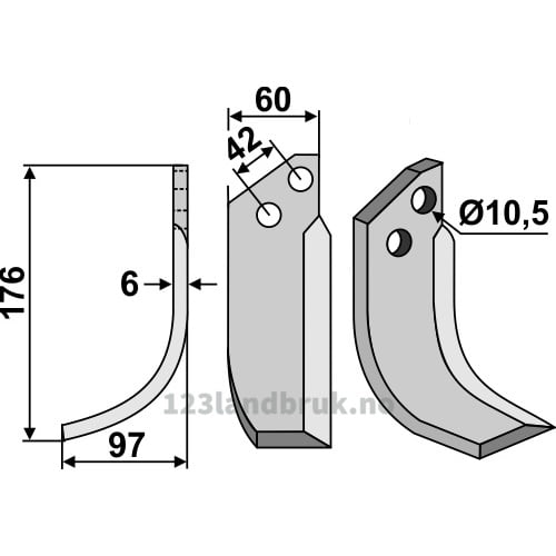 Rotorfreskniv – 176x60x6mm – Venstre – Valpadana