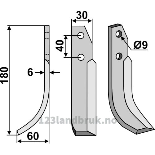 Rotorfreskniv, 180x30x6 mm, Venstre til Nibbi Bruno