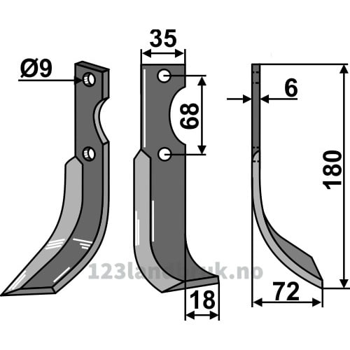 Rotorfreskniv, 180x35x6 mm, Høyre til Grillo (Pinza)