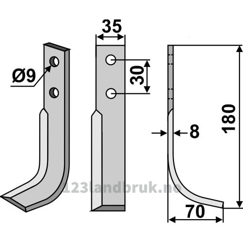 Rotorfreskniv – 180x35x8mm – Høyre – Goldoni