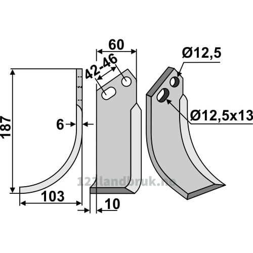 Rotorfreskniv – 187x60x6mm – Venstre – Goldoni